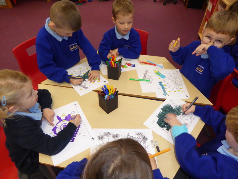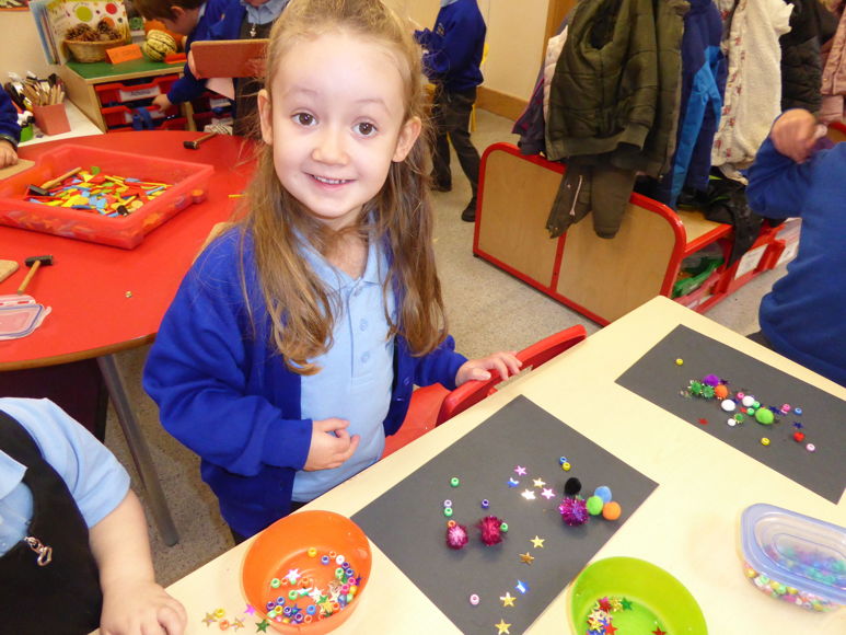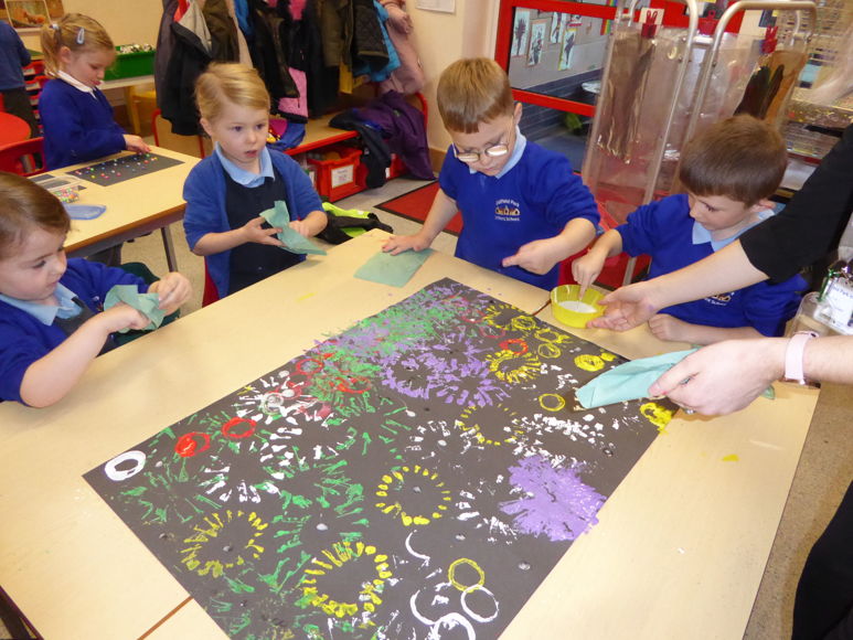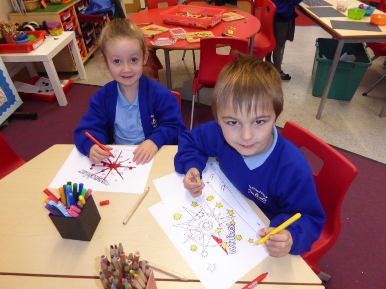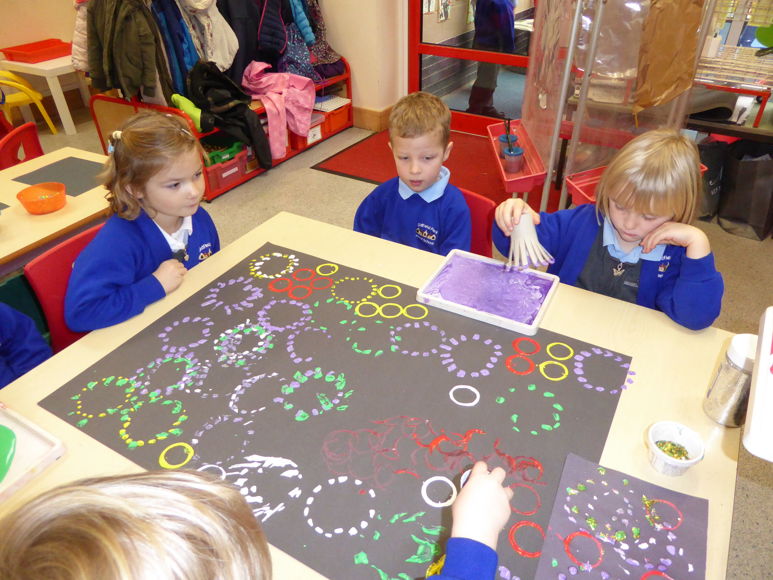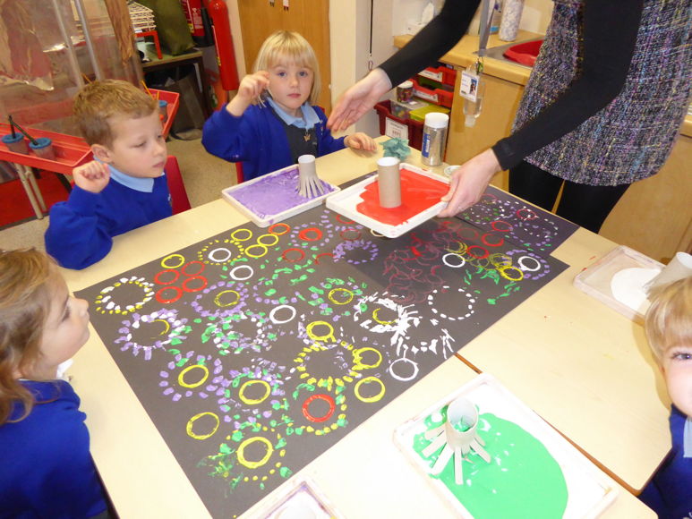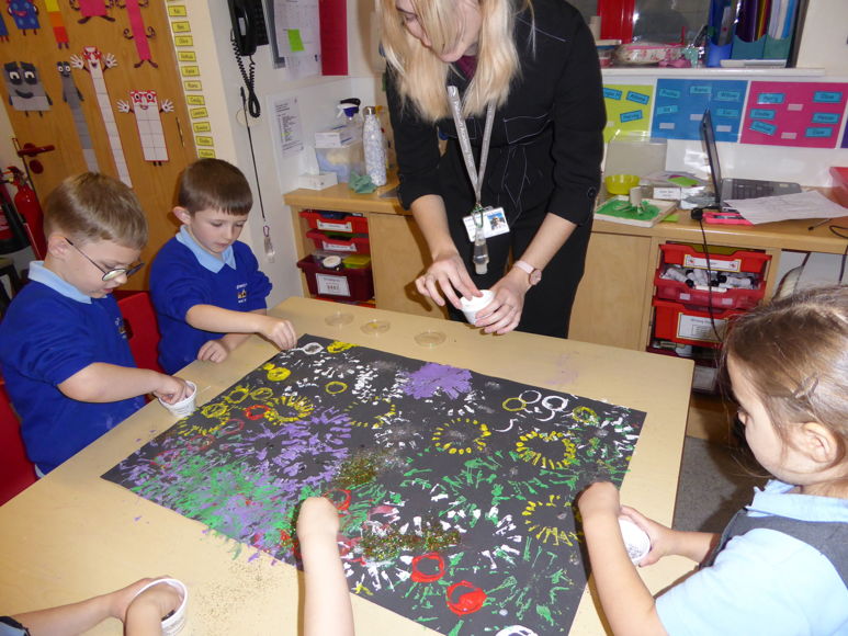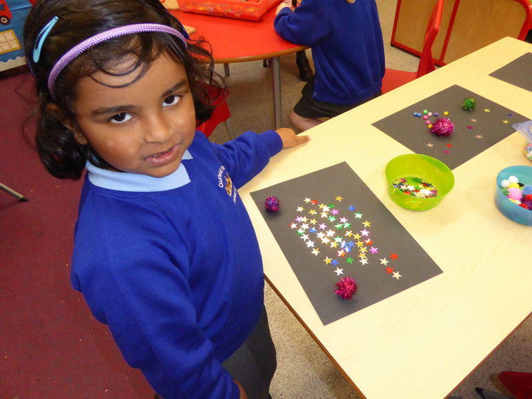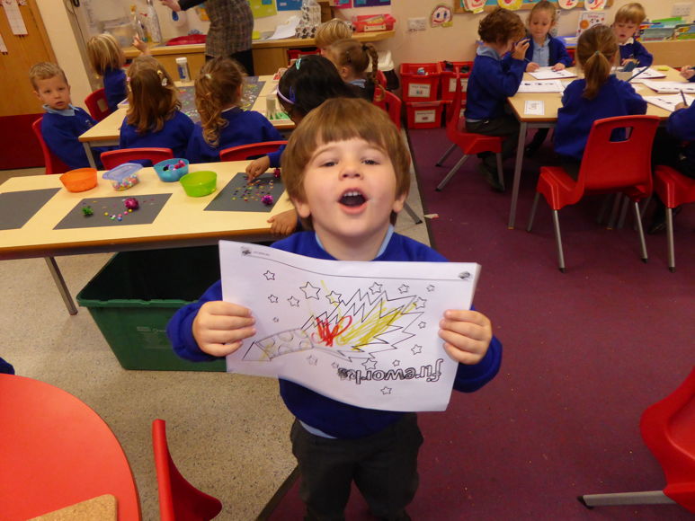 This week the children have been learning about bonfire night and fireworks! They have enjoyed making firework pictures using lots of different media. They also loved the story 'Meg and Mog', and wrote words using their sounds.
