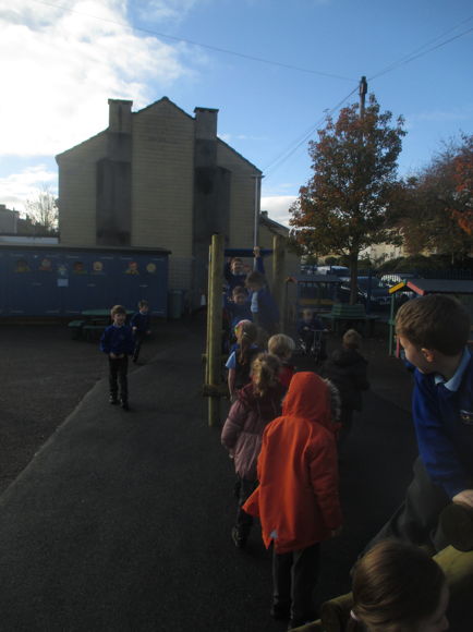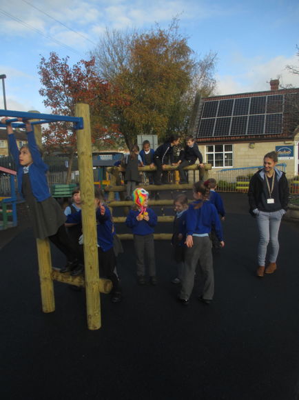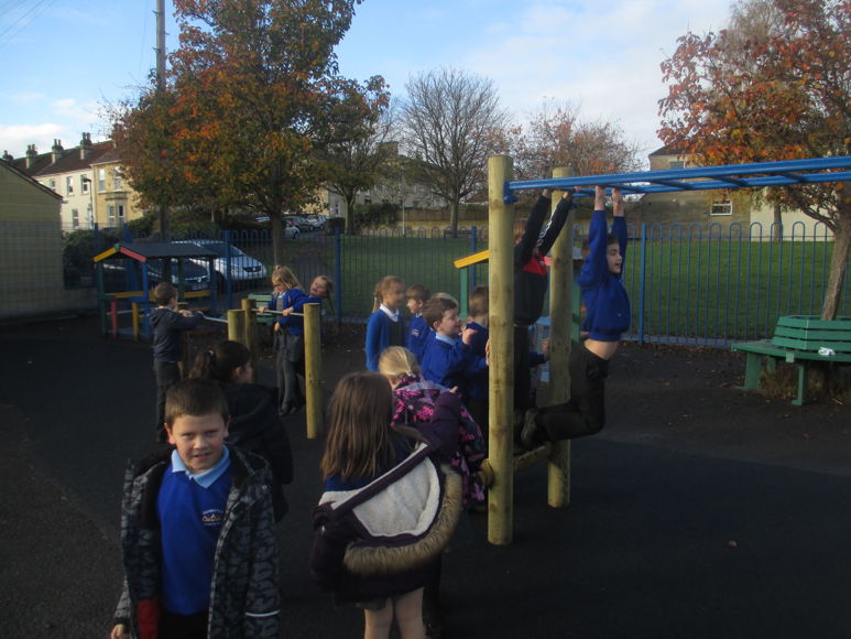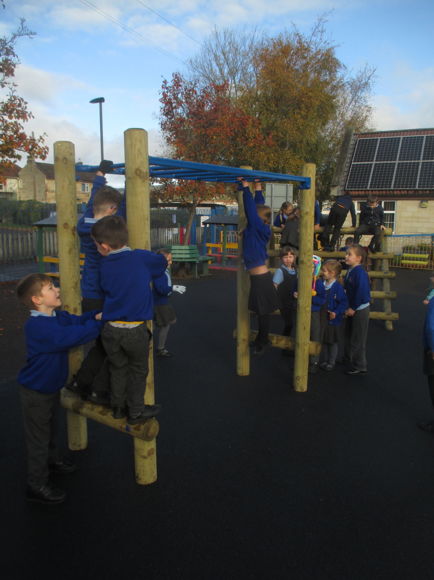 The new playground equipment was installed over the weekend and left to settle in on Monday, but today Y2 got into the playground first!!