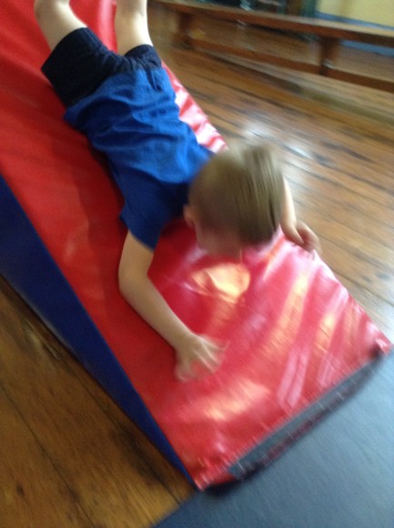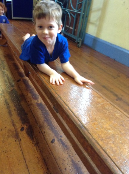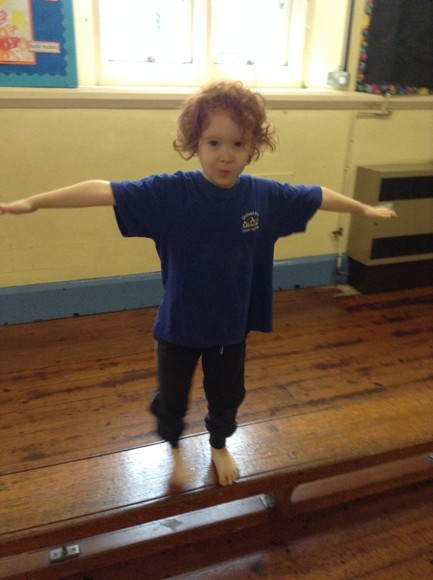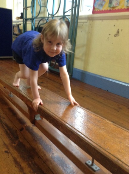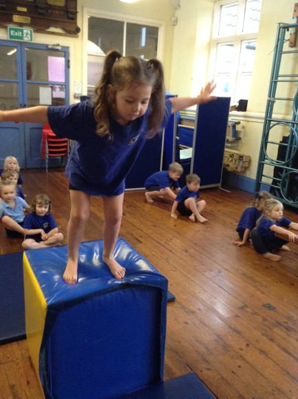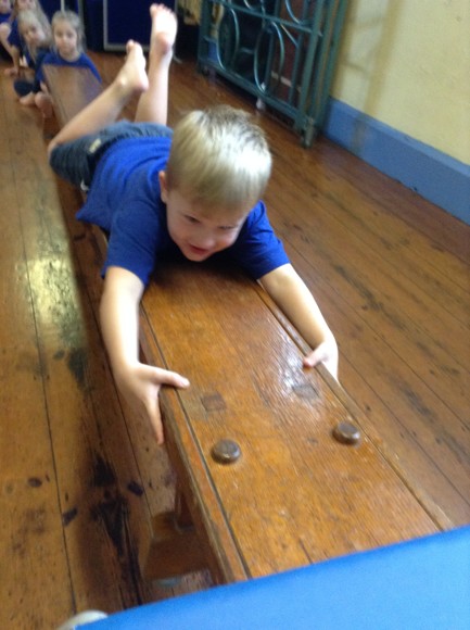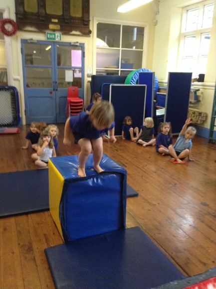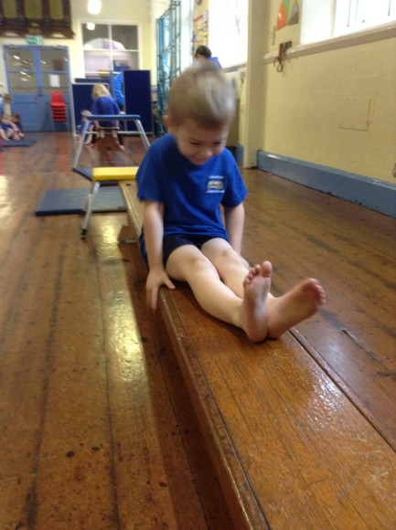 This term in PE we are doing gymnastics. We are thinking of different ways to travel such as side stepping, slithering and walking on tip toes. Today, we attempted to travel along the benches in a variety of ways. We had to jump off the PE table at the end and remember to bend our knees. The soft play equipment was a big hit and the children loved jumping from the big cube and sliding down the slide at the end.