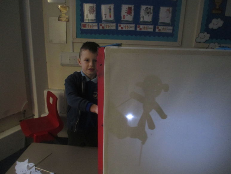 During the term we have been learning about levers and pivots. As part of that we have made a shadow puppet each based on a character from traditional tales. Each one had to have a moving part (the lever) with a split pin in (the pivot) to help it move. Here's how we got on...