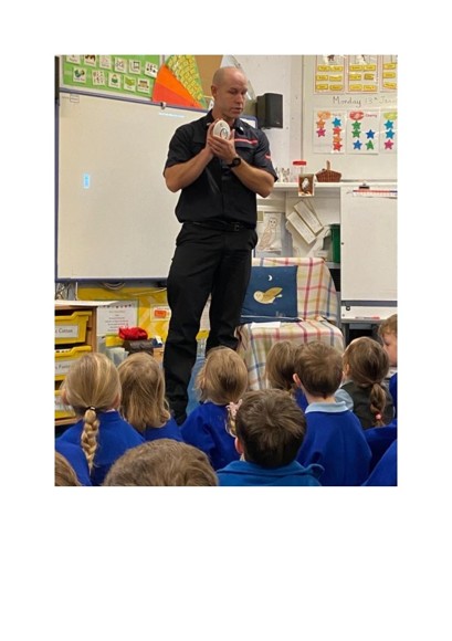 The fire brigage came to visit us in school on Monday. They taught us lots about fire saftey. We learnt about smoke detectors, the 'stop drop and roll' technique and we even got to look around a fire engine. It was very exciting!