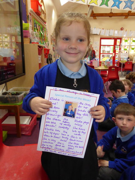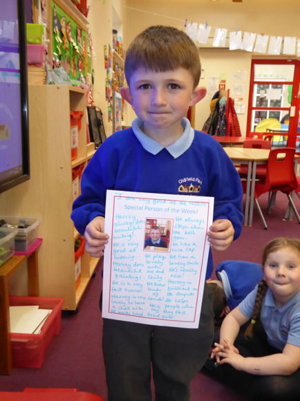 Four more people have been Special Person of the Week! We thought of some lovely things to say about them, and they were really proud to hold up their certificates!