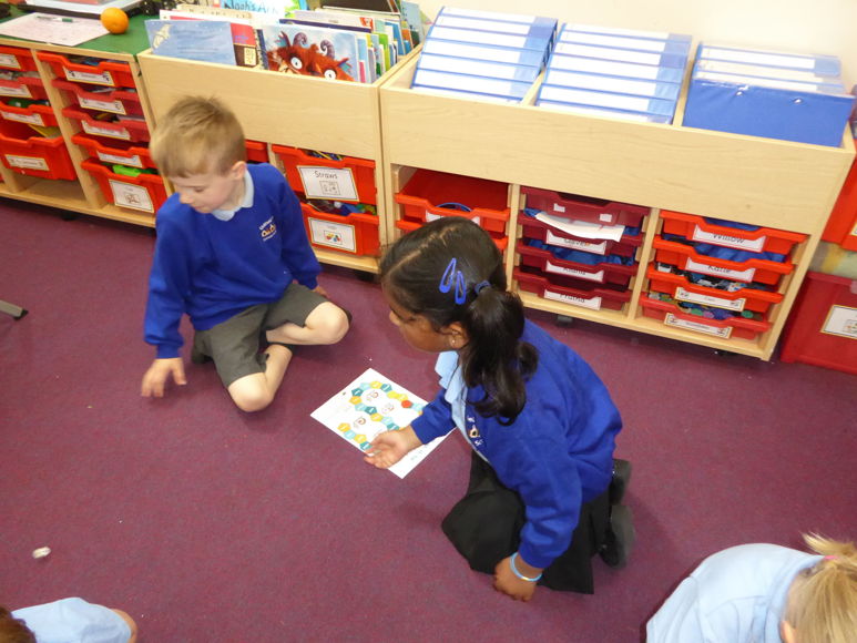 Today we played a fun reading game in phonics. We played with a partner, and had to roll the dice, then read the word we landed on! Some pairs of children finished quickly so they went back to read the words they hadn't landed on in their game.