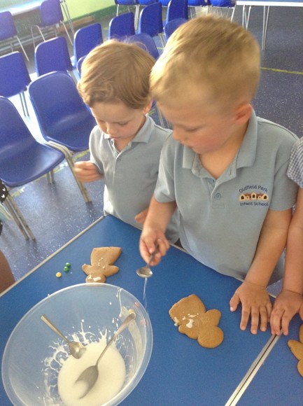 We have enjoyed learning about the story of 'The Gingerbread Man'. We baked our own gingerbread men and had fun weighing out all of the different ingredients. We took turns to mix, stir and roll the dough. We really enjoyed decorating our cooked gingerbread man and taking it home to eat.