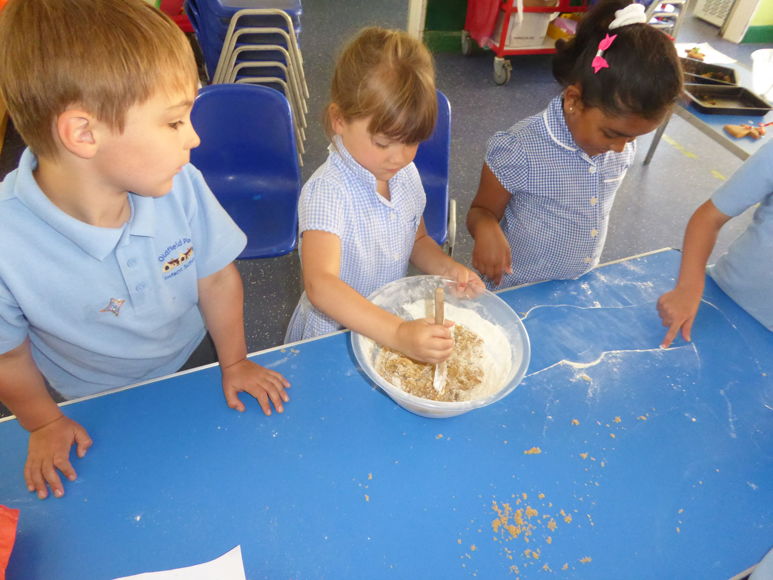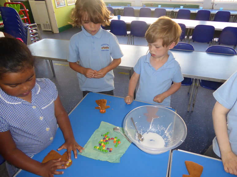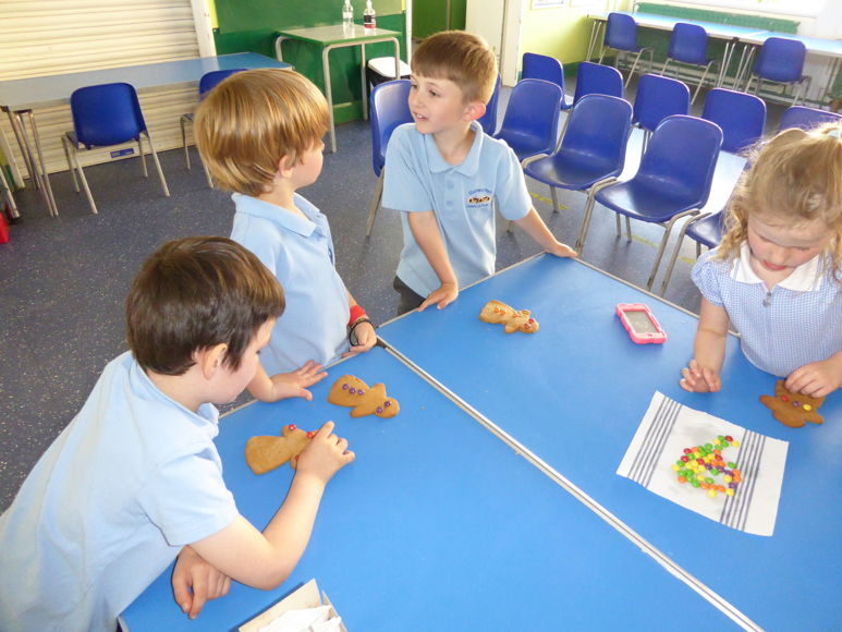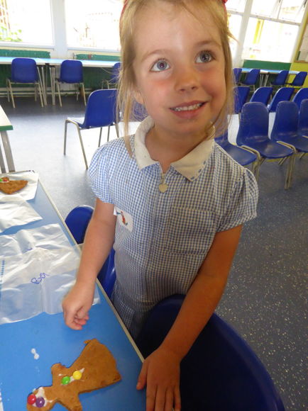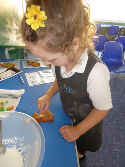 We have had lots of fun this week making gingerbread! We mixed up the dough, rolled it out then cut it using a cutter. Once it was baked and cool we decorated it with icing and sweets. What a treat!