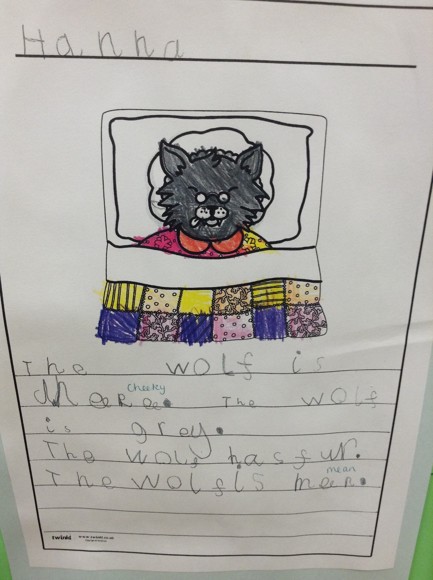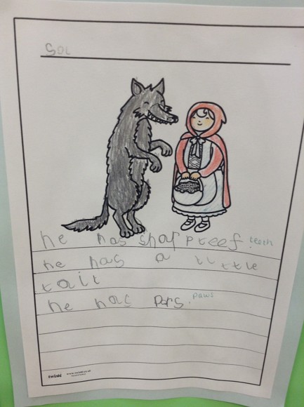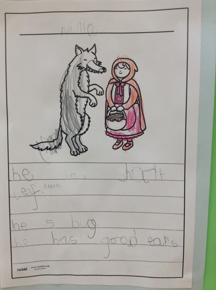 This week, we have based our learning about the story of 'Little Red Riding Hood'. We wrote a character description of the wolf. We enjoyed thinking of lots of words to describe the wolf. We all did a super job, here are a few descriptions for you to read.