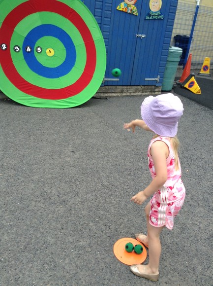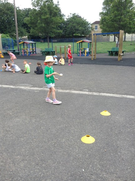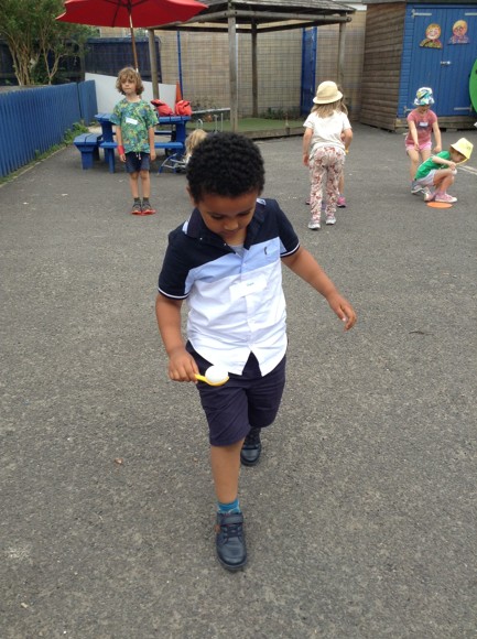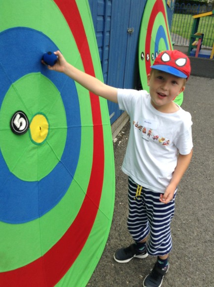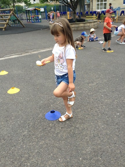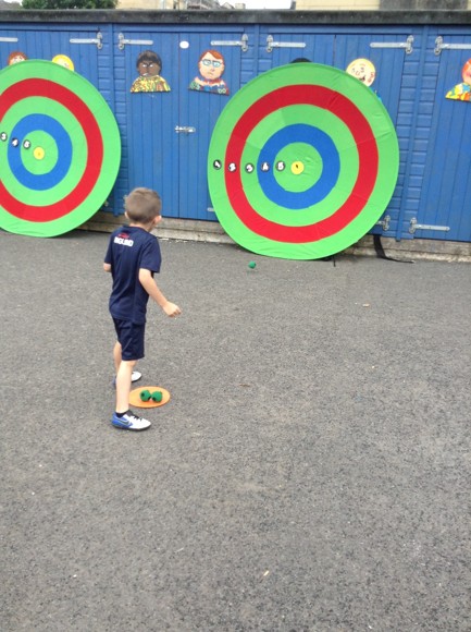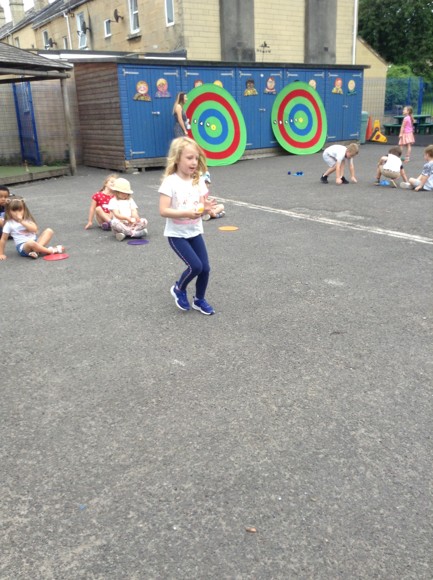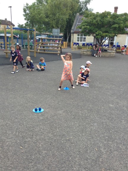 Today, we had a mini sports day. We rotated around 5 different sporting activities and had so much fun! These activities included the hurdles, an egg and spoon race and throwing at a target.
