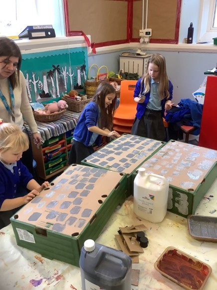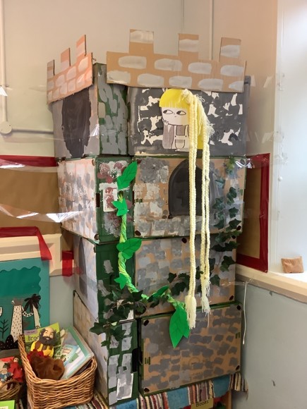 The children in Squirrel class have been making a tower for the classroom. It is 8 ft tall!