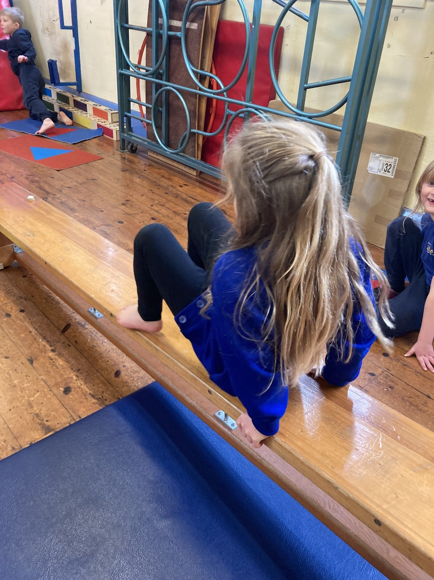 We have been learning some basic gym moves like pike sit, straddle fold and V sit. We have also been really focussing on 3 things when we use the apparatus...