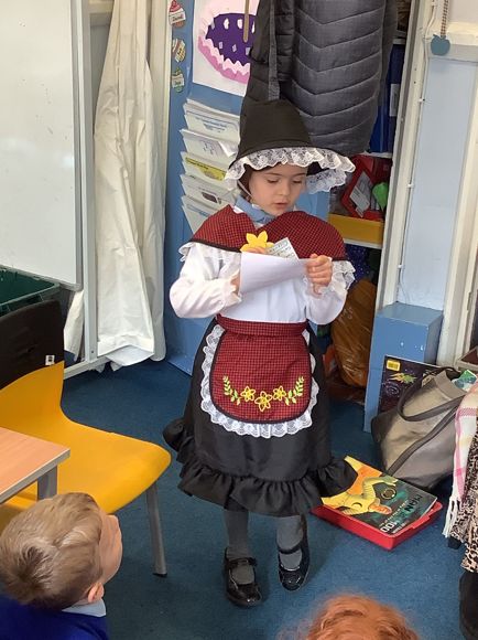 You will also see a photo of Amber who shared with the class some great facts about St David's day and also showed us her wonderful traditional Welsh costume.