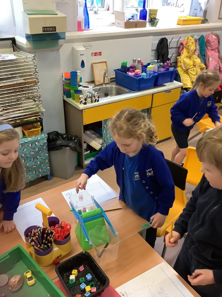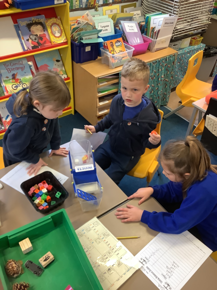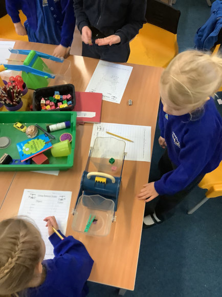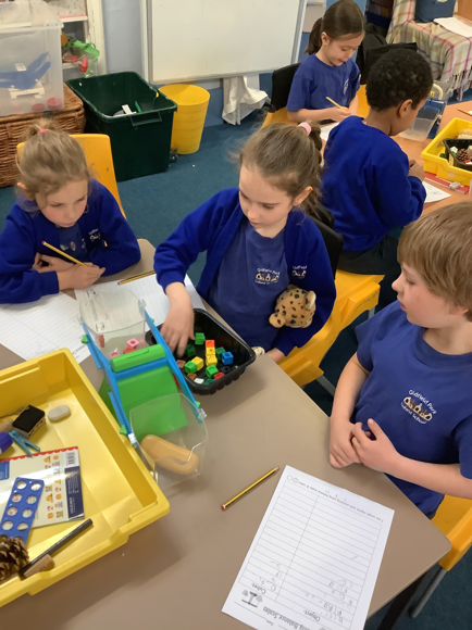 Today, the children worked together to find out how many multilink cubes it would take to balance one of the objects on their table. They were very careful in their measurements and used their fantastic amethyst power to work together really well!
