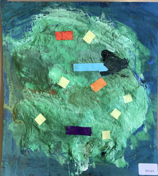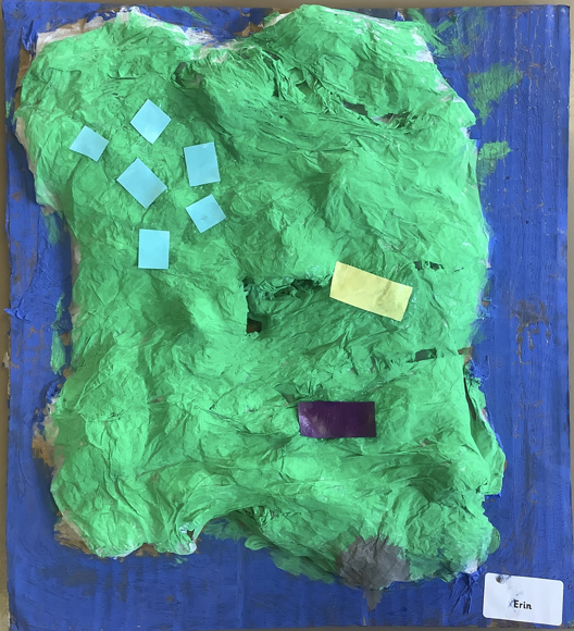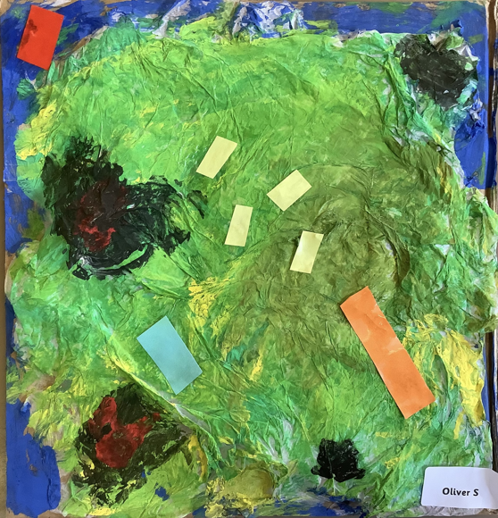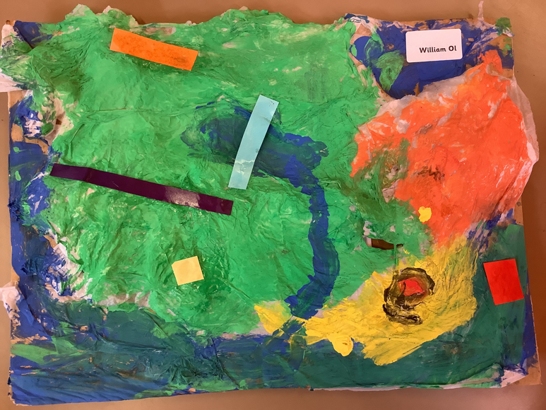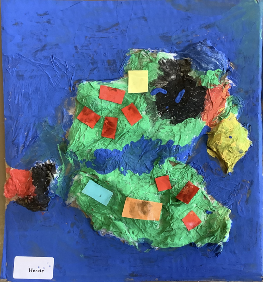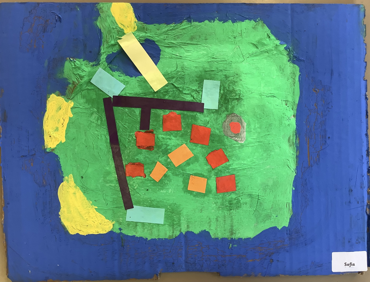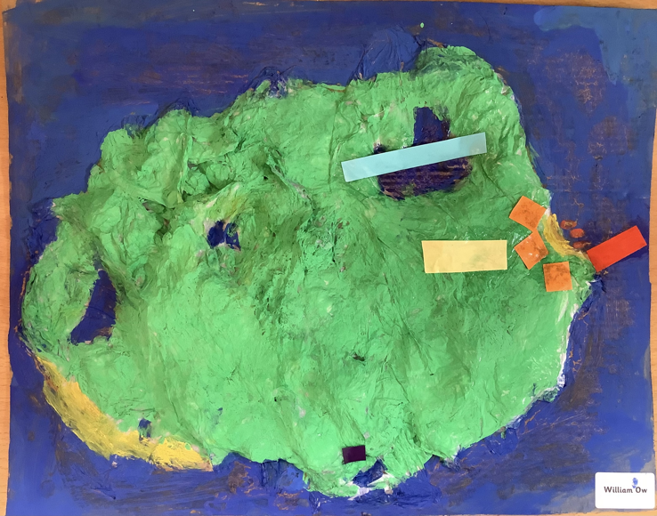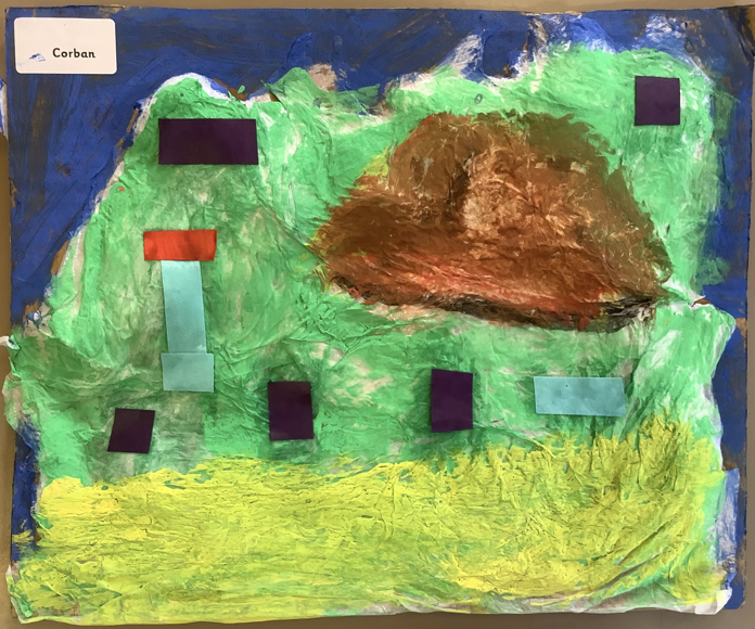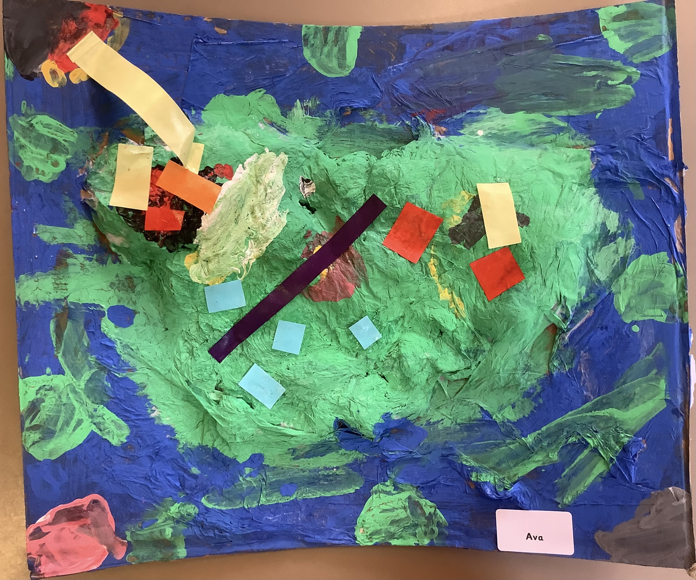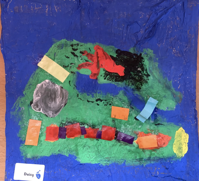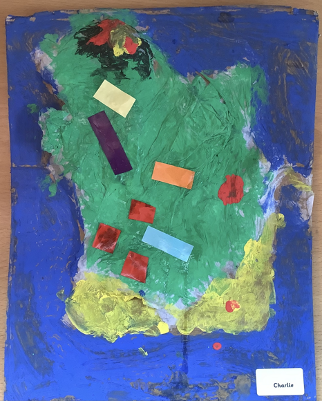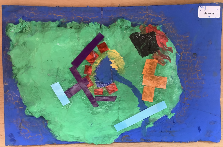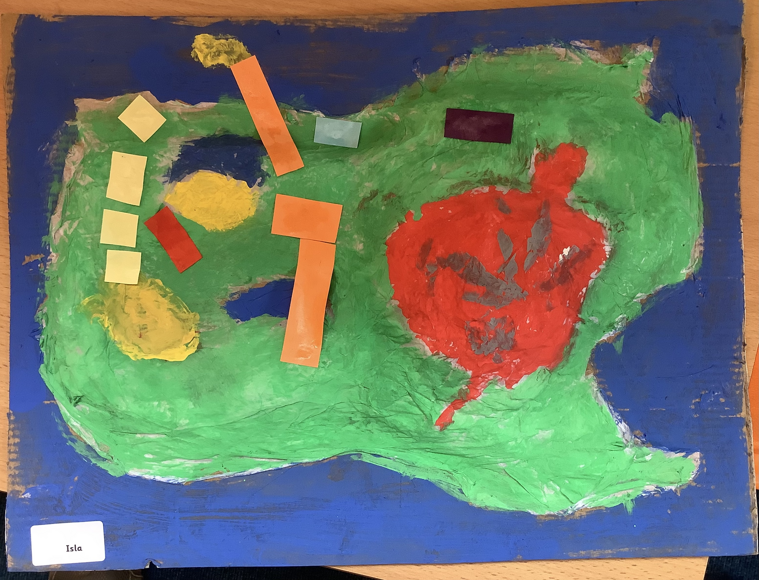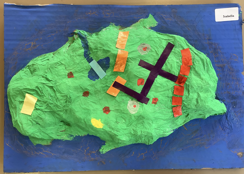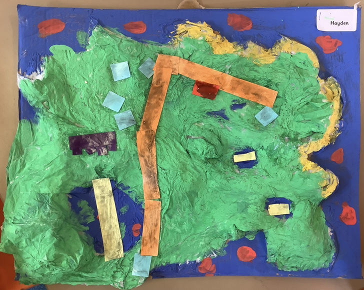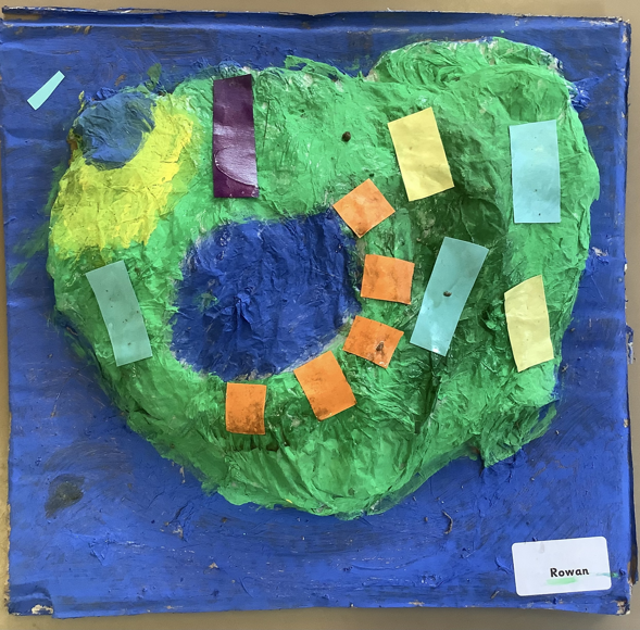The islands are painted, left to dry and then extra human features like a castle, school, roads, bridges and houses were added.