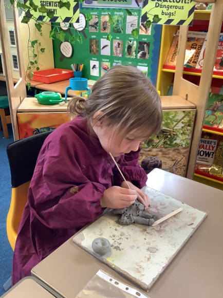 Today we have been getting our hands dirty (and possibly our clothes) when we made our clay minibeasts. The children worked really hard to follow their design, thinking carefully about the size and shape. Once they are dry, we will add some paint.