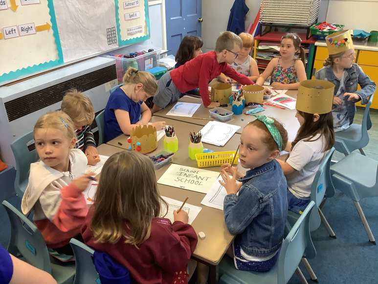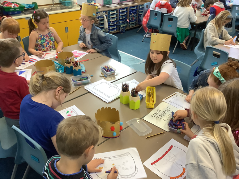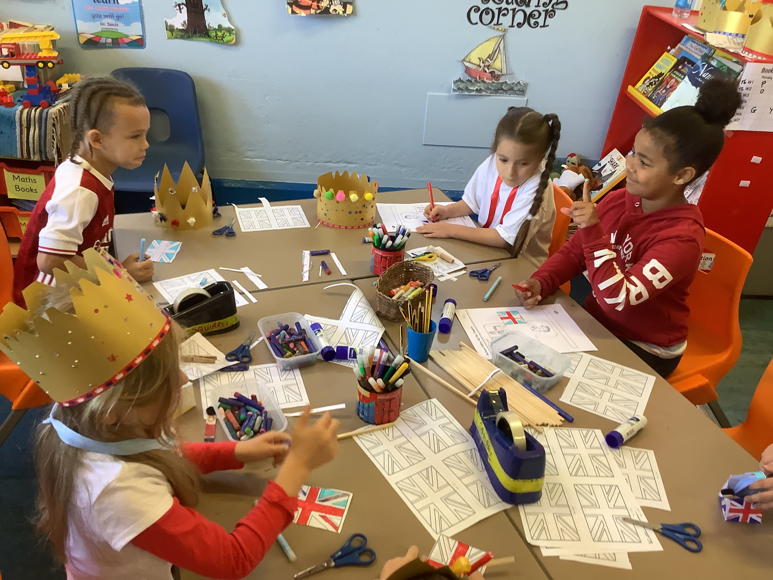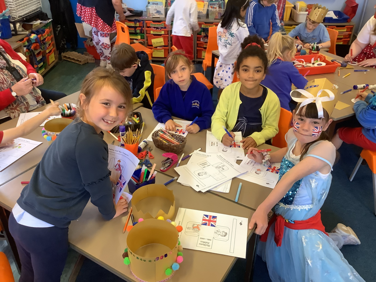 BackIt was Platinum Jubilee Day on the last day of the term. All the children and teachers came in dressed to impress in their red, white and blue outfits. During the day the children had a choice of jubilee themed activities they could chose to do between Rabbit and Squirrel classrooms. Things like jubilee medal making, grenadier guard book mark making, bunting making, jubilee box making, crown making and more.