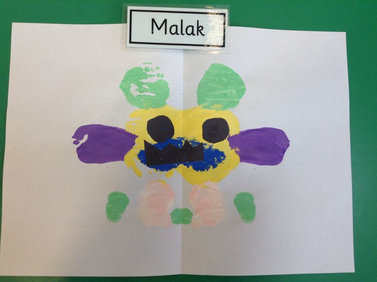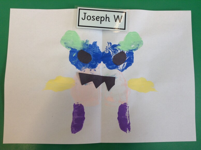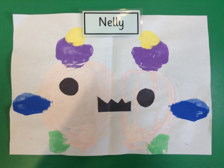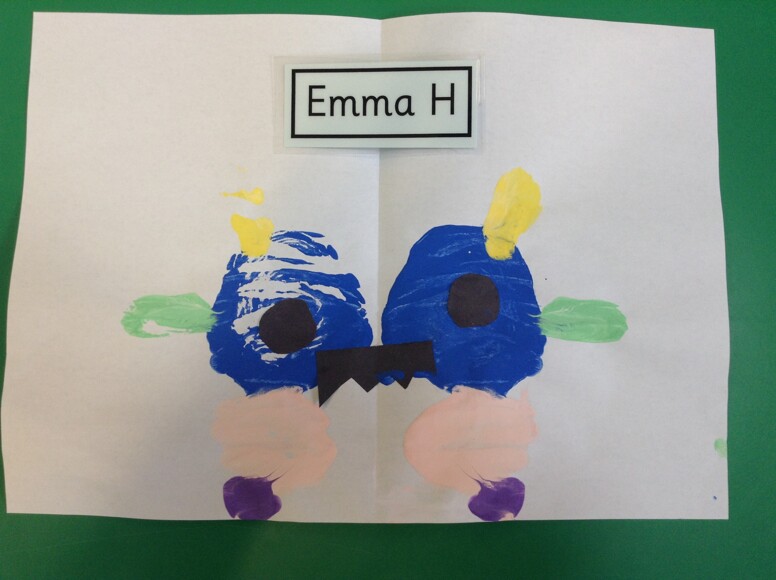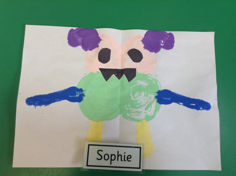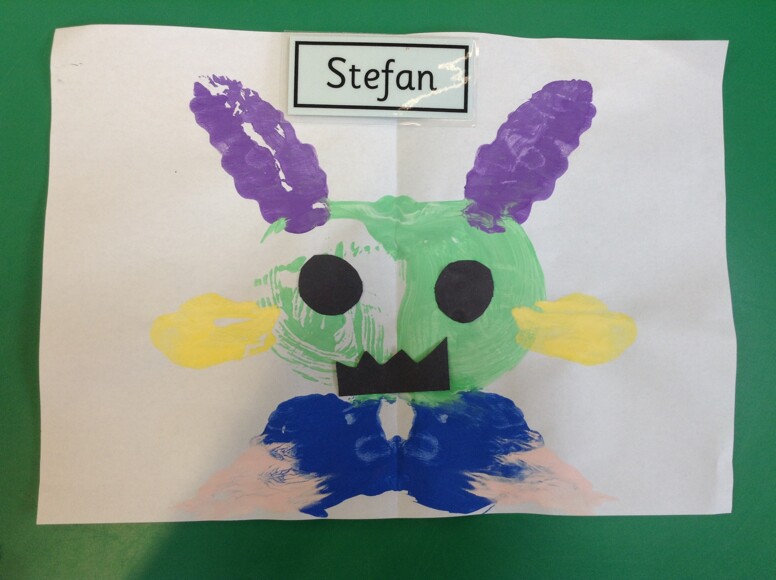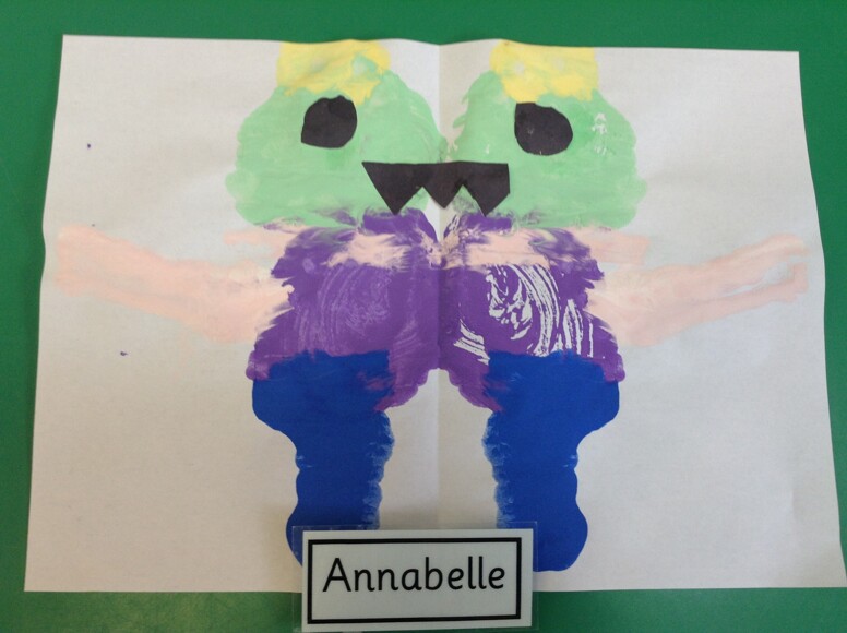 After listening to the story of 'The Three Billy Goats Gruff' we painted our own Troll. We learned how to paint one side of our paper and fold it in half to create a symmetrical painting. Here are just a few of the super Trolls that were created.