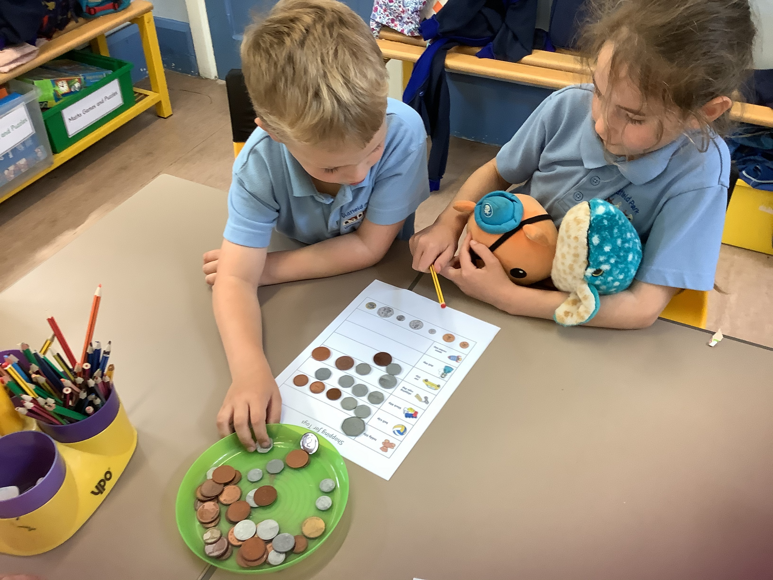 We have been learning all about money over the last 2 weeks. We have ordered, counted, grouped, compared, found totals and even shopped with money!