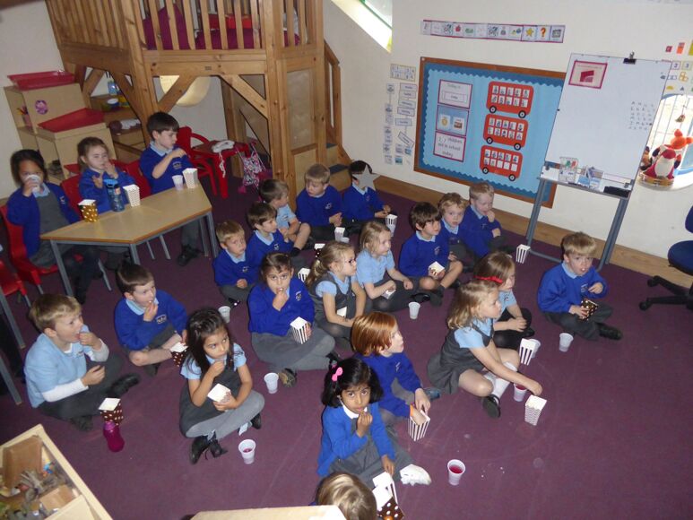 Fox Class filled their pompom jar this week so they were able to vote for a class treat! The Foxes chose to have a movie 'night' with popcorn and squash. They decided to watch the film 'Lego Ninjago' and all had a lovely afternoon.