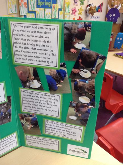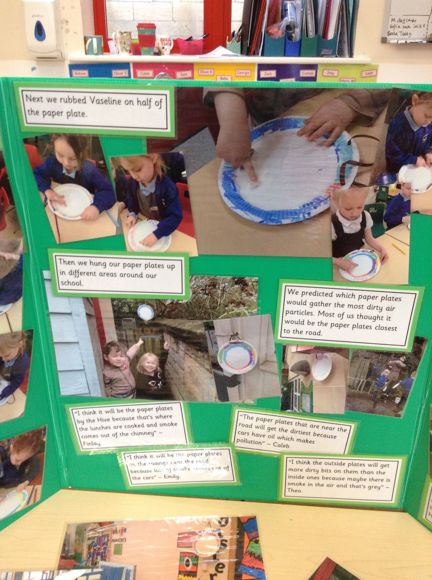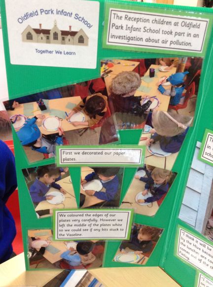 The children in Reception carried out an investigation to see which areas of the school have the most air pollution. Here are some photos of them carrying out the investigation, making predictions and analysing the results.